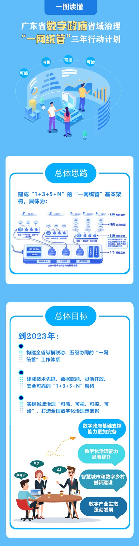 日前,《广东省数字政府省域治理“一网统管”三年行动计划》(下称《行动计划》)正式印发,明确广东将进一步深化数字政府改革建设,促进信息技术与政府治理深度融合,打造理念先进、管理科学、平战结合、全省一体的“一网统管”体系,努力打造全国数字化治理示范省。